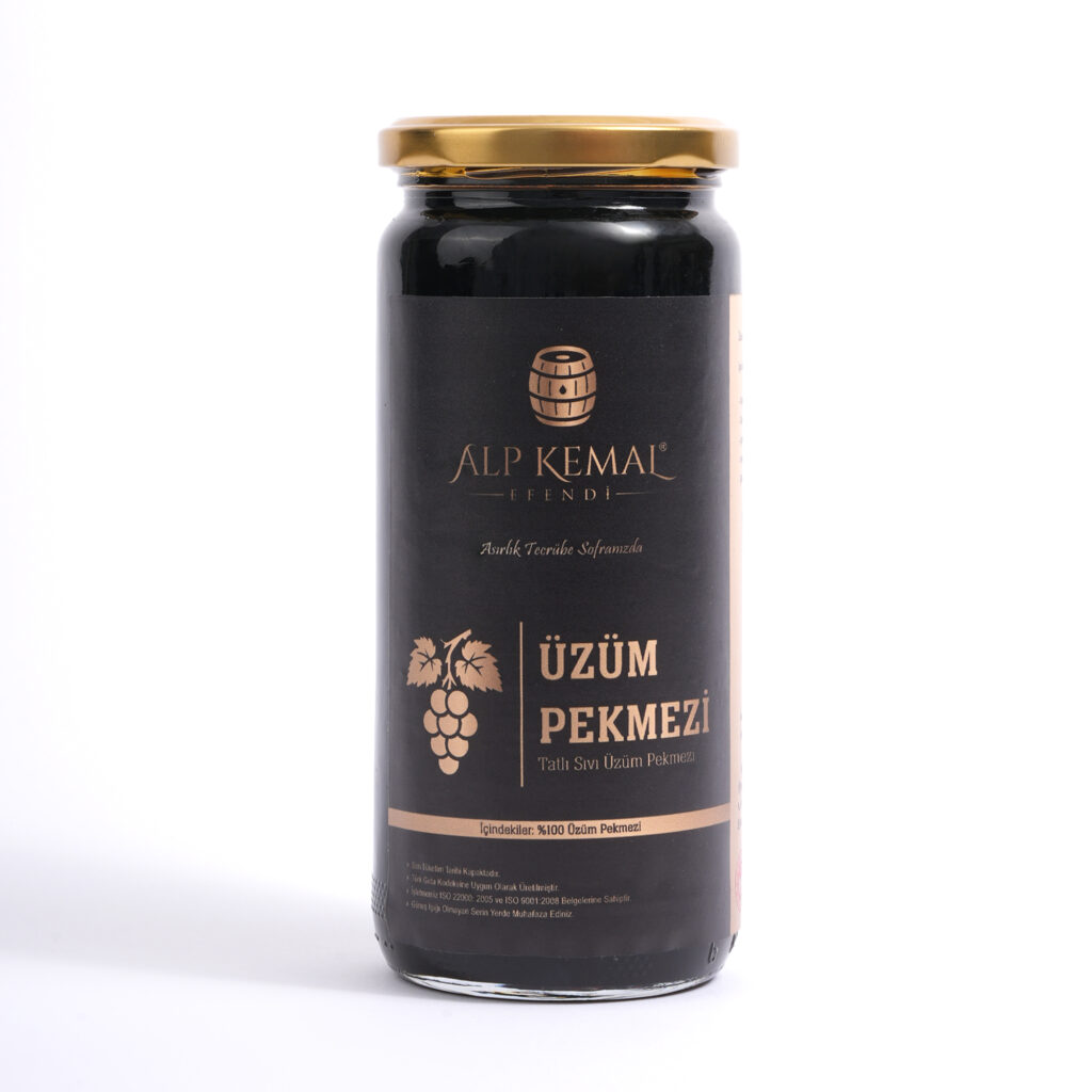 Üzüm pekmezi, özenle seçilmiş olgun üzümlerin geleneksel yöntemlerle kaynatılıp yoğunlaştırılmasıyla elde edilen, doğal ve besleyici bir pekmez çeşididir. Şeker ilavesi, katkı maddesi ve koruyucu içermeyen üzüm pekmezi; yüksek enerji değeri, vitamin ve mineral içeriğiyle yüzyıllardır sofralarda yer alır.